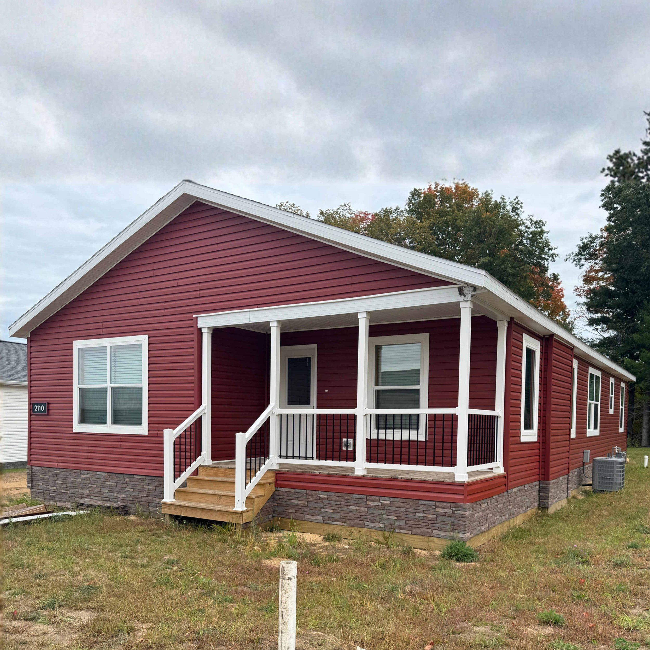 This home features Commodore’s Forever 5 floor plan. This spacious layout has LVP flooring throughout, includes appliances, a natural wood trim interior, a walkthrough primary closet in the bathroom, a large pantry, a raised washer and dryer with drawers below, a covered front porch, and a door leading to the backyard and deck from one of the guest rooms.